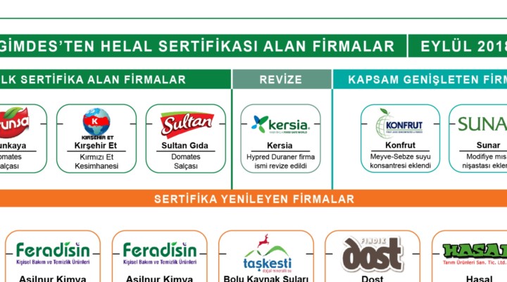 KASIM 2019’DA GİMDES’TEN HELAL VE TAYYİB SERTİFİKASI ALAN FİRMALARIMIZ